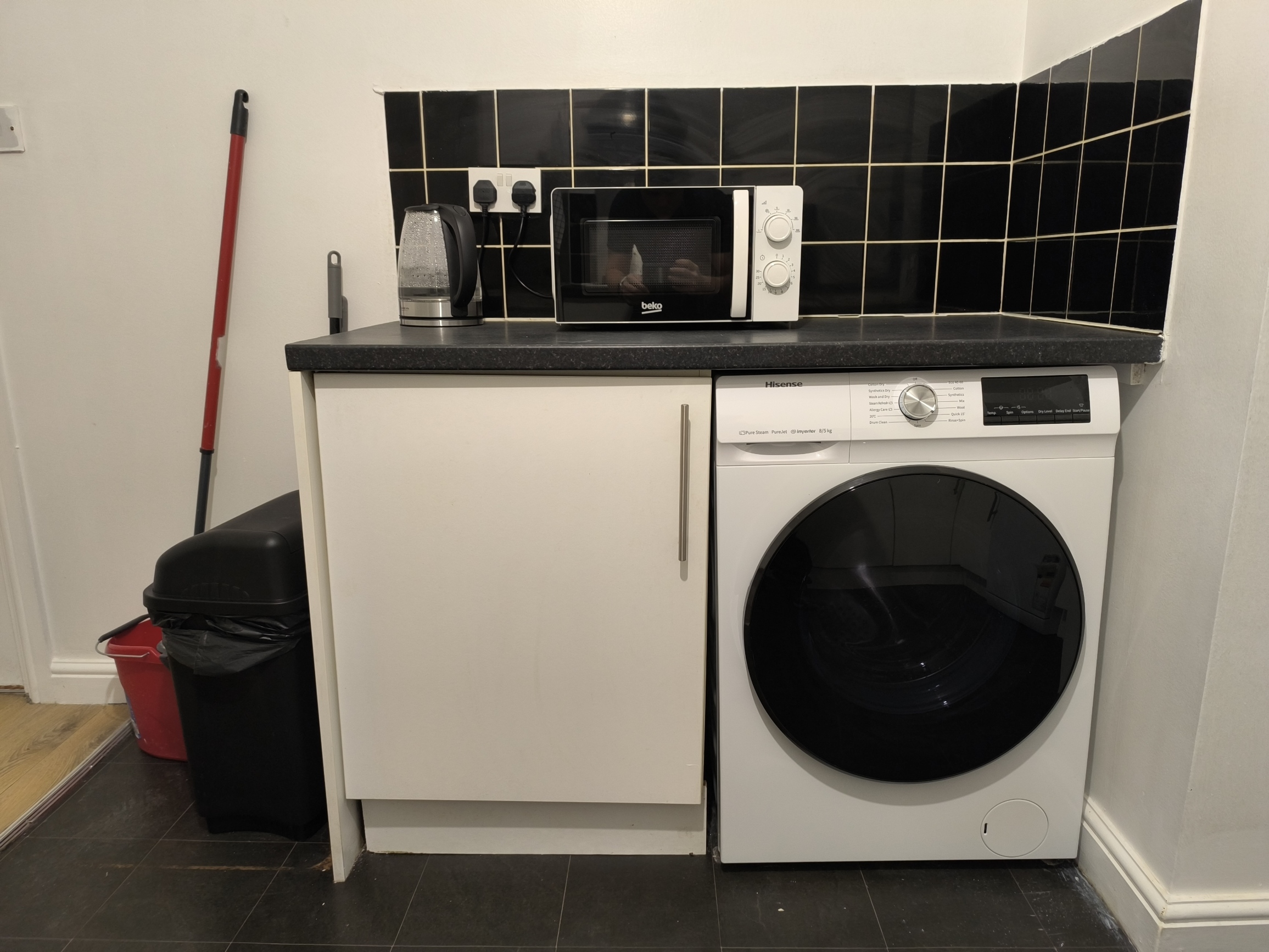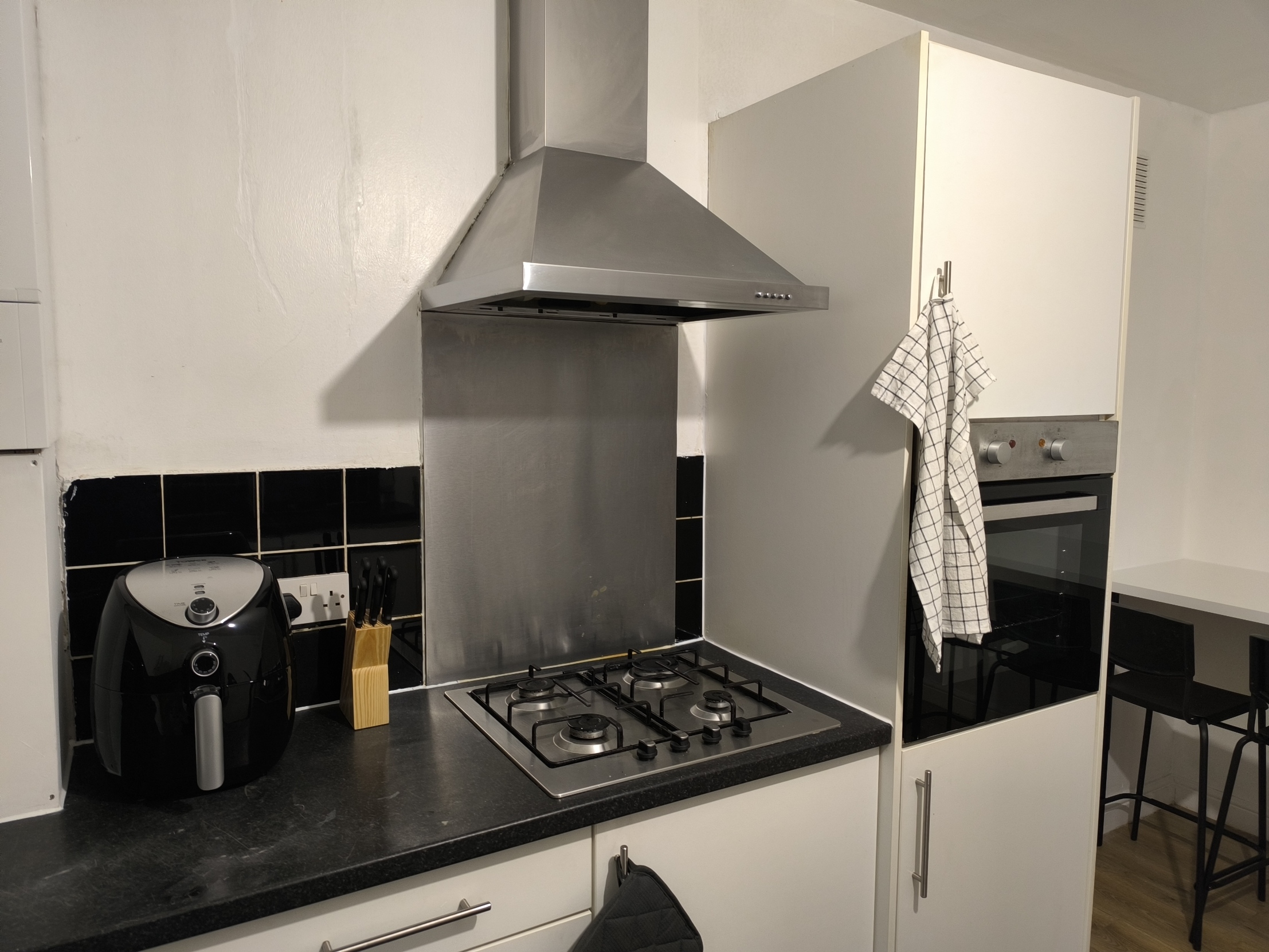 Fully equiped Kitchen: Hob, Oven, Cofe machine, Air fryer, Toaster, Microwave, Kettle, Washer/Dryer, Iron and Ironing board